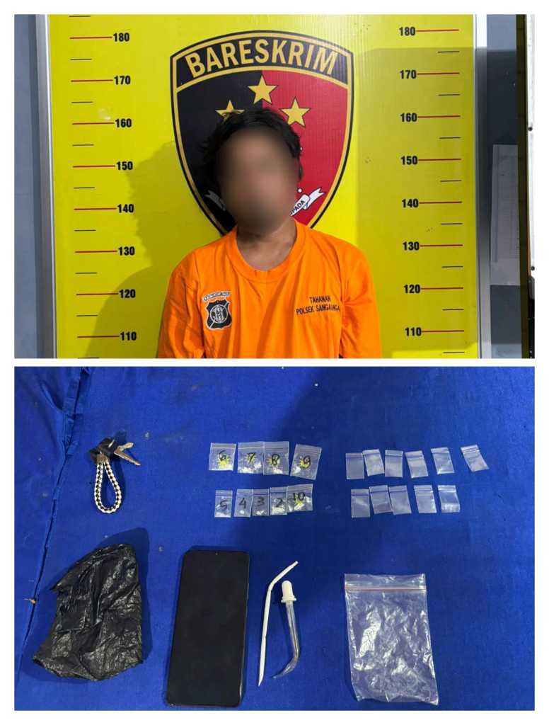 Penangkapan berlangsung di Jalan Purwojoyo Blok 3 RT 04, Kelurahan Pendingin, Kecamatan Sanga Sanga, Kabupaten Kutai Kartanegara. Tersangka T diamankan setelah polisi menerima informasi dari warga yang resah atas aktivitas mencurigakan di sekitar tempat tinggalnya.