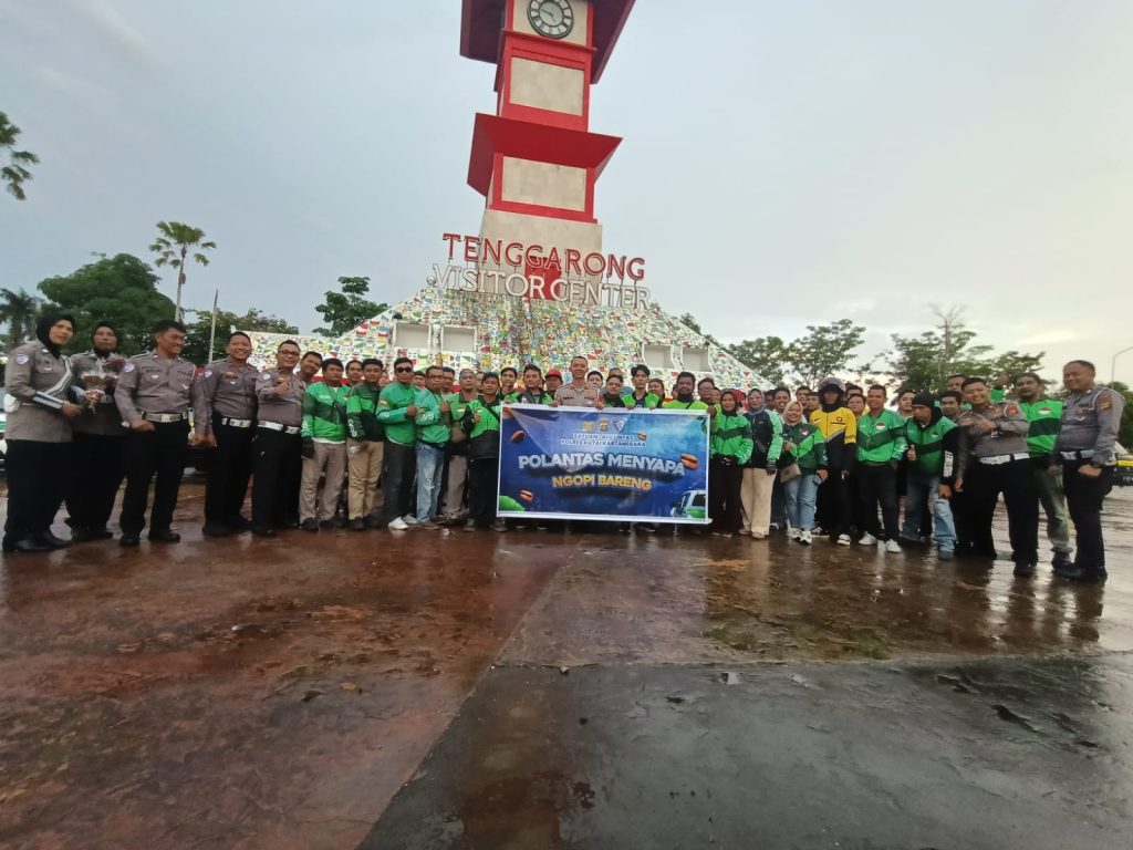 Tenggarong, AksaraMedia.com – Upaya meningkatkan kesadaran tertib berlalu lintas terus dilakukan oleh Satlantas Polres Kutai Kartanegara (Kukar). Lewat program “Polantas Menyapa”, Satlantas menggelar ngopi bareng bersama komunitas ojek online (ojol) di Taman Jam Bentong, Jalan Wolter Monginsidi, Tenggarong. Jumat, 29 Agustus 2025. Meski sempat diguyur hujan, suasana acara berlangsung akrab, dihadiri berbagai komunitas ojol seperti Grab Pasar Seni Tenggarong (Gapster), Grab Bike Tenggarong (GBT), Kogetter Tenggarong, Budast Tenggarong, dan Komunitas Pelandok Tenggarong.