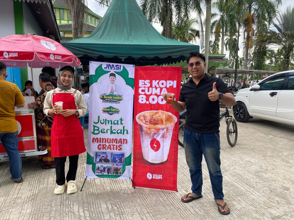 Kutai Kartanegara, Aksaramedia.com – Semangat berbagi tidak selalu diwujudkan dengan hal besar. Jaringan Media Siber Indonesia (JMSI) Kutai Kartanegara (Kukar) bersama Sekian Coffee membuktikan hal itu lewat program “Jumat Berkah” dengan membagikan 300 cup minuman gratis kepada jamaah Salat Jumat dan masyarakat sekitar Masjid Jami Aji Amir Hasanuddin, Tenggarong, Jumat (29/8/2025).
