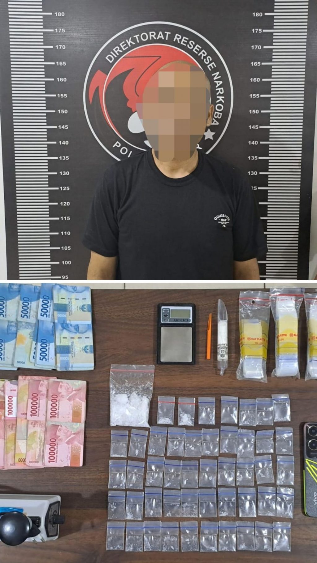 Dalam penggerebekan itu, pelaku sempat mencoba mengelabui petugas dengan membuang sebuah tas ke pinggir sungai. Namun upaya tersebut gagal, karena setelah diperiksa, tas tersebut ternyata berisi 48 bungkus sabu, plastik klip, timbangan digital, serta uang tunai Rp12 juta. Selain itu, polisi juga mengamankan telepon genggam dan mesin press plastik yang digunakan untuk mengemas sabu agar siap diedarkan.